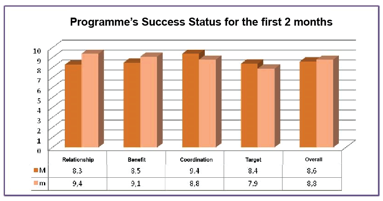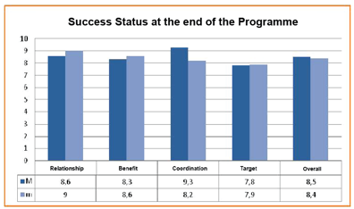 Our second assessment and closing meeting was held on December 4, 2019. Prior to the meeting, we directed the questionnaires again. The results were assessed by our consultant and coordination team, and shared with the mentors and mentees in separate sessions. Success status of the programme is summarized in Table 4. Moreover, the mentors and mentees gave feedback by submitting their personal observations, opinions and comments about the process in their own sessions.